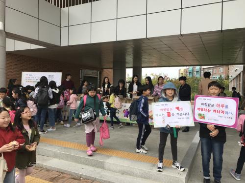 ¾ÆÄ§¹äÀÇ Çʿ伺°ú ¼ÒÁßÇÔÀ» »ý°¢Çغ¸µµ·Ï ¡®¾ÆÄ§¹ä Ä·ÆäÀÎ È«º¸ ¹®±¸ °ø¸ðÀü¡¯À» ¹Ì¸® °³ÃÖÇÏ¿© ¼±Á¤µÈ ÇлýµéÀÇ ÀÛǰÀ¸·Î ¡¯Çö¼ö¸·°ú È«º¸ÆÇ¡¯À» Á¦ÀÛÇÏ¿© ÇлýµéÀÇ Âü¿©µµ¸¦ ³ô¿´´Ù.