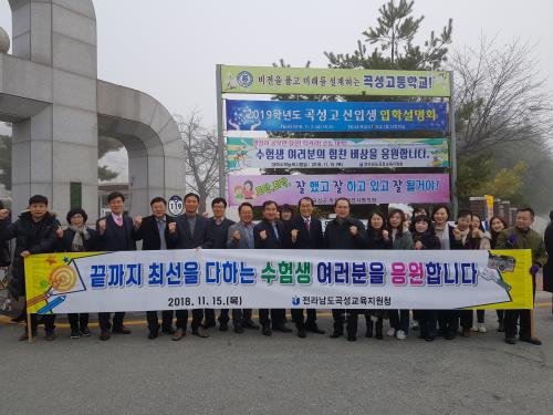 Àü¶ó³²µµ°î¼º±³À°Áö¿øÃ»(±³À°Àå ÀÌÁ¾ÅÃ)Àº 15ÀÏ 2019Çг⵵ ´ëÇмöÇдɷ½ÃÇèÀåÀÎ °î¼º°íµîÇб³ Á¤¹®¿¡¼ Àü Á÷¿øÀÌ Âü¼®ÇÑ °¡¿îµ¥ ¼öÇè»ý, ¼öÇè»ýÀ» ÀÀ¿øÇϱâ À§ÇØ ÇÔ²²ÇÑ ÈĹè ÀçÇлý ¹× ÇкθðµéÀ» °Ý·ÁÇÏ´Â ½Ã°£À» °¡Á³´Ù. À̳¯ Çà»ç¿¡´Â À¯±Ù±â °î¼º±º¼ö, ¾çµ¿Àç °î¼º°æÂû¼Àåµµ Á÷¿øµé°ú ÇÔ²²ÇÑ °¡¿îµ¥ ¼öÇè»ýµéÀÇ ¼±ÀüÀ» °£ÀýÈ÷ ±â¿øÇß´Ù.