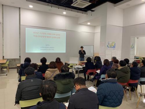 ù ¹øÂ°·Î´Â, ÀüºÏ ¿ÏÁÖÀÇ °í»êÇâ ±³À°°øµ¿Ã¼ Çùµ¿Á¶ÇÕ Å½¹æÀ» ÅëÇØ ¿î¿µÀÚÀÎ ±èÁÖ¿µ ÁýÇàÀ§¿øÀå°ú ¹ÚÇöÁ¤ Àü »ç¹«±¹ÀåÀ¸·ÎºÎÅÍ, ¸¶À»±³À°°øµ¿Ã¼ Ȱµ¿ÀÇ ¼º°ú¿Í °úÁ¦¿¡ ´ëÇØ ûÃëÇÏ´Â ½Ã°£À» °¡Á³´Ù. µÎ ¹øÂ°·Î´Â, ¼ÒÅëÀÇ ½Ã°£À» ÅëÇØ ±³À°Áö¿øÃ» ÀåÇл縦 ºñ·ÔÇÑ °ü°èÀÚ¿Í °ü³» ±³°¨´ÜÀÇ ºÐÀÓ Åä·ÐÀ» °¡Á³´Ù.¸¶Áö¸·À¸·Î, ¼Ò¾çÁßÇб³ ÃßÃ¢ÈÆ ±³°¨¼±»ý´ÔÀ¸·ÎºÎÅÍ ¡®Çб³¸¦ ǰÀº ¸¶À», Áö¿ªÀ» »ì¸®´Â ±³À°¡¯À̶ó´Â ÁÖÁ¦·Î Ư°­ ½Ã°£À» °¡Á³´Ù.
