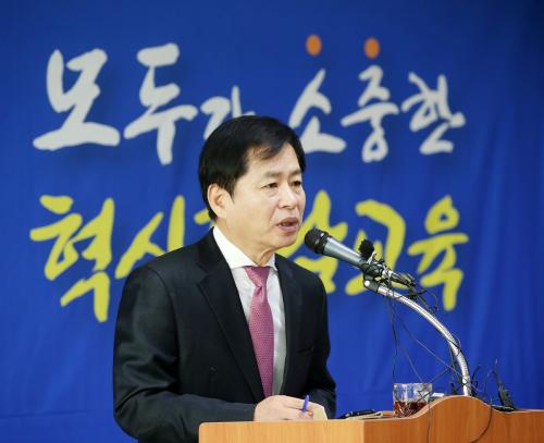 Àå¼®¿õ ±³À°°¨Àº À̳¯ ¿ÀÀü µµ±³À°Ã» 5Ãþ ÁßȸÀǽǿ¡¼­ ½Å³â ±âÀÚȸ°ßÀ» °®°í ¡°»õÇØ¿¡´Â Çõ½ÅÀü³²±³À°ÀÇ µ¿·ÂÀ» ¸ð¾Æ º»°ÝÀûÀÎ ½Çõ¿¡ ³ª¼­ ±³À°ÇöÀåÀÇ º¯È­¸¦ À̲ø¾î³»°Ú´Ù.¡±¸é¼­ À̰°ÀÌ ¹àÇû´Ù.