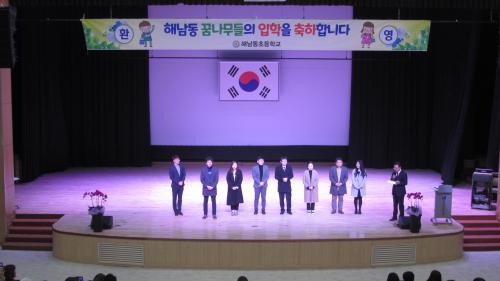 ¿ÀÀü 10½Ã¿¡ ¿¸° ÀÔÇÐ ¹× °³ÇнÄÀº 192¸íÀÇ 1Çг⠽ÅÀÔ»ýÀÌ 6Çг⠼±¹èµéÀÇ ¼ÕÀ» Àâ°í ÀÔÀåÇÏ´Â °ÍÀ¸·Î ½ÃÀ۵ƴÙ. ÀÔÇлý°ú Çкθ𸦠À§ÇØ ÇØ³² ¶¥³¡ ¿ÀÄɽºÆ®¶óÀÇ ÃàÇÏ °ø¿¬µµ ÆîÃÄÁ³´Ù. ƯÈ÷, ÇлýµéÀÌ Àú¸¶´ÙÀÇ ¸öÁþÀ¸·Î ÀÚ±â´Ù¿òÀ» ÆîÃÄ À̸§À» ³Î¸® ¾Ë¸®´Â Àǹ̸¦ µÇ»ì¸®´Â ¸íÂû ¼ö¿©½ÄÀÌ µ¸º¸¿´´Ù.