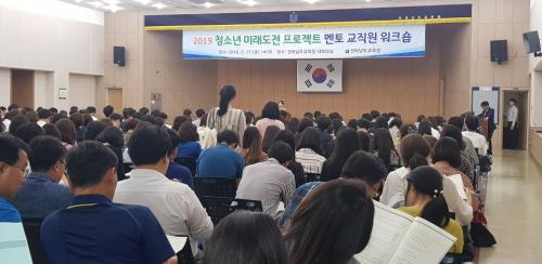 Àü¶ó³²µµ±³À°Ã»Àº 5¿ù 17ÀÏ ¿ÀÈÄ Ã»»ç 2Ãþ ´ëȸÀǽǿ¡¼ ¡®Ã»¼Ò³â ¹Ì·¡µµÀü ÇÁ·ÎÁ§Æ®¡¯ ÃÖÁ¾ ¼±¹ßÆÀ ¸àÅä ±³Á÷¿øÀ» ´ë»óÀ¸·Î ¿öÅ©¼óÀ» °³ÃÖÇß´Ù.