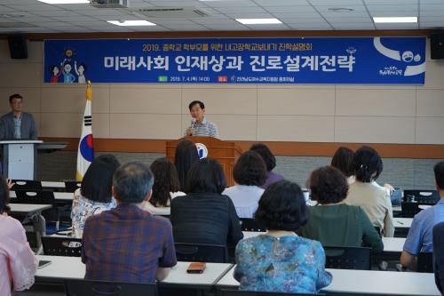 Àü¶ó³²µµ¿©¼ö±³À°Áö¿øÃ»(±³À°Àå ±è¿ë´ë)Àº Áö³­ 7¿ù 4ÀÏ(¸ñ) ¿ÀÀü 10½Ã ±³À°Ã» 2Ãþ ´ëȸÀǽǿ¡¼­ ¿©¼öÁö¿ª ÁßÇб³ 3Çгâ Çкθð 150¿©¸íÀ» ´ë»óÀ¸·Î ¡®¿©¼öÀÇ ÀÎÀçµéÀ» À§ÇÑ ¹Ì·¡»çȸ ÀÎÀç»ó°ú °í±³ Áø·Î¼³°èÀü·«¡¯À̶ó´Â ÁÖÁ¦·Î ³»°íÀåÇб³ º¸³»±â Çкθð ÁøÇм³¸íȸ¸¦ °³ÃÖÇß´Ù.