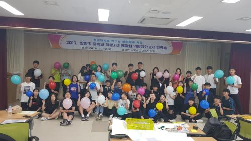 ÁßÇб³´Â 7¿ù 12ÀÏ(±Ý) ¡®¼øÃµ½Ã û¼Ò³â ¹®È­ÀÇ Áý¡¯¿¡¼­ ¡®ÇлýÀÚÄ¡·Î ¸¸µå´Â ÇູÇÑ Çб³¡¯¶ó´Â ÁÖÁ¦·Î °ü°èÇâ»óÀ¸·Î ÆòÈ­·Î¿î °øµ¿Ã¼ ¼¼¿ì±â ½Å·Ú ¼­Å¬ °æÇèÇÏ±â ¹× ´ë¾È ã±â, Çб³º° 1Çбâ Ȱµ¿ »ç·Ê°øÀ¯, 2Çб⠰èȹ ¼ö¸³¿¡ ´ëÇÏ¿© ÇлýȰµ¿À» ½Ç½ÃÇϰí, ÇлýÀÚÄ¡ ´ã´ç±³»ç¸¦ ´ë»óÀ¸·Î Çлý Àαǰú ¹ÎÁֽùα³À°¿¡ ´ëÇÑ ¿ª·®°­È­ ¿¬¼ö¸¦ ½Ç½ÃÇÏ¿´´Ù.