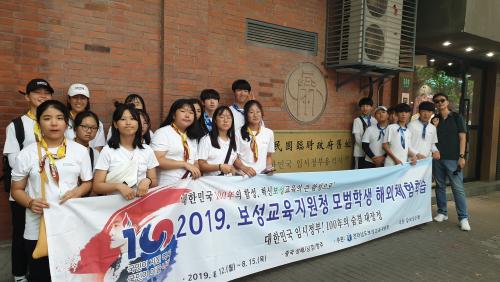 ÃÊ¡¤ÁßÇб³º° ¸ð¹üÇлý ¹× »çȸÀû¹è·Á´ë»ó(ÃÊ 20¸í, Áß 14¸í) 34¸íÀ¸·Î ±¸¼ºµÈ üÇèÇнÀ´ÜÀº Áö³ 8. 12.(¿ù) ~ 8. 15.(¸ñ) 3¹Ú 4ÀÏÀÇ ÀÏÁ¤À¸·Î Áß±¹ »óÇØ, ³²°æ, Ç×ÁÖ ÀÏ´ëÀÇ ´ëÇѹα¹ ÀÓ½ÃÁ¤ºÎÀÇ À̵¿ °æ·Î¸¦ µû¶ó ¼±Á¶µéÀÇ µ¶¸³ÀÇÁö¿Í ÅõÀïÀÇ ¿ª»ç¸¦ ¸ö¼Ò üÇèÇÏ¿´´Ù.