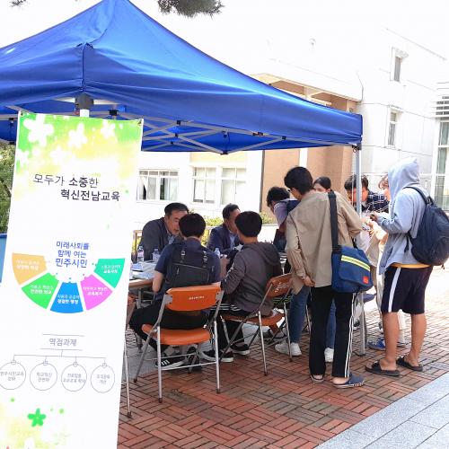 µµ±³À°Ã»Àº ±¤ÁÖ±³À°´ëÇб³ Çлýȸ°ü ¾Õ¿¡ È«º¸ ºÎ½º¸¦ ¸¶·ÃÇϰí Àü³²±³À°ÀÇ ÇöȲ, Çõ½Å ±³À°Á¤Ã¥, ÀλçÁ¦µµ, ±³¿ø ¿ª·®°È ¹× º¹Áö¸¦ À§ÇÑ Áö¿ø »çÇ×, ´Ù¾çÇÑ Çб³ ±³À°È°µ¿ µîÀ» È«º¸Çß´Ù. ¶ÇÇÑ ¿¹ºñ±³»çµéÀÌ ±Ã±ÝÇØ ÇÏ´Â Àλç¹ß·É ÇöȲ, ³ó¾îÃÌ µµ¼º®Áö Çб³ ±Ù¹«¿©°Ç °³¼± ³ë·Â, Áö¿ª´ÜÀ§±³¿øÀÓ¿ëÁ¦ µî¿¡ °üÇÑ ÁúÀÇ¡¤ÀÀ´ä°ú »ó´ã ½Ã°£À» °¡Á³´Ù.
