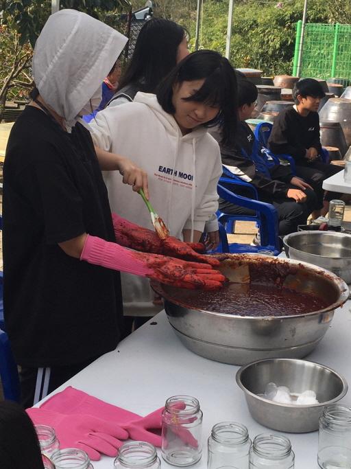 ¼º¹é ¸¶À»Çб³´Â ¿Ïµµ Áö¿ªÀÇ À¯ÀÏÇÑ ¸¶À»Çб³·Î Àι®ÇÐ, ¹Ì¼ú, ´Ùµµ, ÀüÅë½Äǰ üÇè ÇÁ·Î±×·¥À» ¿î¿µÇϰí ÀÖ´Ù. À̹ø Çà»ç´Â Çб³ÀÇ ¿äûÀ¸·Î Çб³ ±³À°°úÁ¤ÀÇ ÀüÅë½Äǰ üÇè°ú ¿¬°èÇÑ ¼ö¾÷À» ÁøÇàÇϱâ À§ÇØ ¸¶À»Çб³ÀÇ ÀüÅë½Äǰ Àü¹®°¡¿Í ÇÔ²² °íÃßÀå ´ã±â üÇèÀ» ÅëÇØ ¸¶À»°ú ÇÔ²²ÇÏ´Â ±³À°°úÁ¤À¸·Î ÁøÇàÇÏ¿´´Ù.