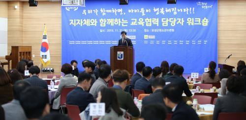 Àü¶ó³²µµ±³À°Ã»(±³À°°¨ Àå¼®¿õ)Àº 11¿ù 21ÀÏ(¸ñ) ¿ÀÈÄ º¸¼º±ºÃ»¼Ò³â¼ö·Ã¿ø¿¡¼ ½Ã․±ºÃ» ¹× ±³À°Áö¿øÃ» ±³À°Çù·Â ´ã´çÀÚ 120¿© ¸íÀÌ Âü¼®ÇÑ °¡¿îµ¥ ¡®ÁöÀÚü¿Í ÇÔ²²ÇÏ´Â ±³À°Çù·Â ´ã´çÀÚ ¿öÅ©¼ó¡¯À» °³ÃÖÇß´Ù.