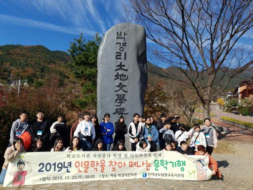 À̹ø ¹®ÇбâÇàÀº Çб³µµ¼°ü ÀÚ¿øºÀ»ç Çлý ¹× ´Ùµ¶Çлý µî 31¸íÀ» ´ë»óÀ¸·Î Çϵ¿ÀÇ ¹Ú°æ¸® ¹®Çаü ¹× ÃÖÂüÆÇ´ìÀ» ¹®ÈÇØ¼³»çÀÇ ¼³¸í°ú ÇÔ²² µ¹¾Æº¸¸ç ¹Ú°æ¸® ÀÛ°¡¿Í ±×ÀÇ ÀÛǰ ¡®ÅäÁö¡¯¿¡ ´ëÇØ¼ »ý°¢ÇØ º¸´Â ½Ã°£À» °¡Á³´Ù. ¶ÇÇÑ ´ã¾çÀÇ ÆÄ¹ÖÇϿ콺¸¦ ¹æ¹®ÇÏ¿© °¡Á·°ú ÇÔ²² ³ª´ ¼ö ÀÖ´Â ÄÉÀÌÅ©µµ ¸¸µé¾ú´Ù. À̵¿ ½Ã°£¿¡´Â ¼Ò¼³ ¡®ÅäÁö¡¯¿¡ °üÇÑ °£´ÜÇÑ µ¶¼ °ñµçº§µµ ¿î¿µÇß´Ù.