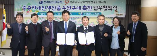 Àü¶ó³²µµ±³À°Ã»(±³À°°¨ Àå¼®¿õ)ÀÌ Áö³­ 26ÀÏ(¸ñ) û»ç 5Ãþ ºñÁî´Ï½º½Ç¿¡¼­ Àü¶ó³²µµ Àå¾ÖÀλý»êǰÆÇ¸Å½Ã¼³°ú ÁßÁõÀå¾ÖÀλý»êǰ ¿ì¼±±¸¸Å Ȱ¼ºÈ­¸¦ À§ÇÑ ¾÷¹«Çù¾àÀ» ü°áÇß´Ù.