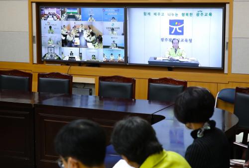ÀåÈÖ±¹ ±¤Áֽñ³À°°¨ÀÌ À¯ÀºÇý ºÎÃѸ® °â ±³À°ºÎÀå°ü ÁÖÀç·Î ¿­¸° Äڷγª19 ´ëÀÀ ½Ã¡¤µµ±³À°°¨ ¿µ»óȸÀÇ¿¡ Âü¿©ÇØ À¯¡¤ÃÊ¡¤ÁßµîÇб³ °³ÇÐ ¿¬±â¿Í ½É°¢ ´Ü°è °Ý»ó¿¡ µû¸¥ ´ëÀÀ¹æ¾ÈÀ» ³íÀÇÇß´Ù.