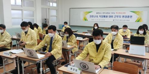 Àü¶ó³²µµÈ­¼ø±³À°Áö¿øÃ»(±³À°Àå ÃÖ¿ø½Ä)Àº 27ÀÏ Äڷγª19 È®ÁøÀÚ ¹ß»ý½Ã û»çÆó¼â¸¦ ´ëºñÇØ ºñ»ó±Ù¹« ÈÆ·ÃÀ» ½Ç½ÃÇß´Ù.