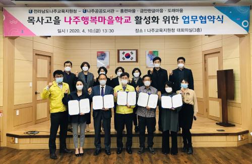 ¶ÇÇÑ, ³ªÁÖ±³À°Áö¿øÃ» ±³À°Àå(±è¿µ±æ)Àº ¡°¸¶À»±³À°°øµ¿Ã¼ ±¸ÃàÀ» À§ÇÑ À̹ø Çù¾àÀ¸·Î ³ªÁÖÇü ¸¶À»Çб³ÀÇ ¿Ü¿¬À» È®´ëÇÏ°í ³»½ÇÈÇÒ ¼ö ÀÖ´Â ÁÁÀº °è±â°¡ ¸¶·ÃµÇ¾ú´Ù. ³ªÁÖ°ø°øµµ¼°ü°ú ¸¶À»Çб³ °ü°èÀںеéÀÇ Àû±ØÀûÀÎ ÇùÁ¶¿¡ °¨»çµå¸°´Ù. ¾ÕÀ¸·Îµµ Áö¿ªÀÇ ÀÎÀû¡¤¹°Àû ÀÚ¿øÀ» Áö¼ÓÀûÀ¸·Î ¹ß±¼ÇØ °¥ °ÍÀ̸ç, ÁöÀÚü, À¯°ü±â°ü µî Áö¿ª»çȸ¿Í ¼ÒÅëÇϰí Çù·ÂÇÏ´Â ¸ñ»ç°íÀ» ³ªÁÖÇູ¸¶À»Çб³ Ȱ¼ºÈ¿¡ ÃÖ¼±À» ´Ù ÇÒ °ÍÀÌ´Ù¡±¶ó°í ¼Ò°¨À» ¹àÇû´Ù.