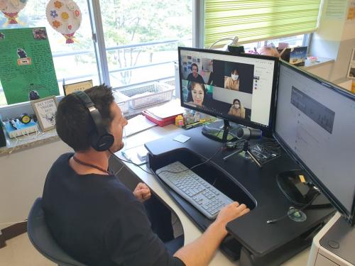 À̹ø »çÀü±³À°¿¡ Âü°¡ÇÑ ¿©¼öÁßÇб³ Á¤°æÈ­ ±³»ç´Â ¡°Äڷγª È®»ê¿¡ µû¶ó ÁýÇÕ¿¬¼ö°¡ ´ëºÎºÐ Ãë¼ÒµÈ »óȲ ¼Ó¿¡¼­ ÀÌ·¸°Ô ¼ÒÀμö·Î ½Ç½Ã°£ ¿ø°Ý È­»ó¿¬¼ö¸¦ ÅëÇØ º¸´Ù È¿°úÀûÀ¸·Î ¿µ¾î±³¼ö¹ýÀ» ¹è¿ï ¼ö ÀÖ´Â ±âȸ°¡ ÁÖ¾îÁ®¼­ °¨»çÇÏ´Ù.¡±¸é¼­ ¡°¿ø¾î¹ÎµéÀÇ ÇöÀå Àû¿ëµµ°¡ ³ôÀº ¼ö¾÷ ³ëÇϿ츦 ¾î¼­ »¡¸® ½ÀµæÇØ ¿ì¸® Çлýµé¿¡°Ô Àû¿ëÇØº¸°í ½Í´Ù.¡±°í ¸»Çß´Ù.