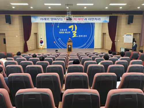 Àü¶ó³²µµ°íÈï±³À°Áö¿øÃ»(±³À°Àå ±èÁ¤Èñ)Àº 10¿ù8ÀÏ(¸ñ) ±³À°Ã» ´Ù¸ñÀû°­´ç¿¡¼­ °ü³» ÃÊ¡¤Áß¡¤°íµîÇб³ Çб³Æø·Â Ã¥ÀÓ±³»ç 37¸íÀ» ´ë»óÀ¸·Î Çб³Æø·Â ¿¹¹æ ¿ª·®°­È­ ¿¬¼ö¸¦ ½Ç½ÃÇß´Ù.