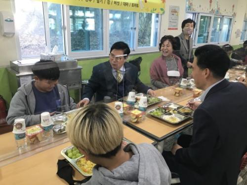 ±³À°Àå°ú ±º¼ö, ³óÇù±ºÁöºÎÀåÀº À强Áß¾ÓÃʵîÇб³ ±Þ½Ä½Ç¿¡¼­ Á÷Á¢ ¹è½Ä¿¡ Âü¿©ÇÏ¿© Çлýµé¿¡°Ô °¡·¡¶±°ú »þÀθӽºÄÏÀ» ³ª´²ÁÖ¾ú°í, Çлýµé°ú ¸¶ÁÖ ¾É¾Æ Á¡½ÉÀ» °°ÀÌ ¸Ô¾ú´Ù.