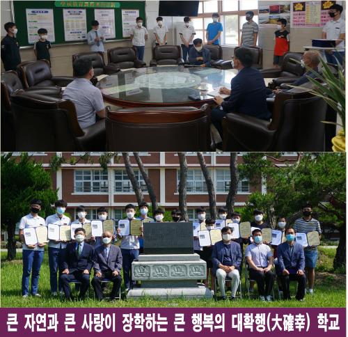 Çб³ÀåÀº, ¡°Áö¸®»ê ´ëÀÚ¿¬°ú Å« »ç¶ûÀÇ ÀåÇÐÀº, ÀÚ¿¬ÀÇ Ç° ¾È¿¡¼ Å« ²ÞÀ» Ű¿ì´Â ¡®Å« Çູ Çб³¡¯¸¦ ¸¸µì´Ï´Ù.¡±¶ó°í Å« °¨»ç¸¦ Ç¥Çß´Ù.