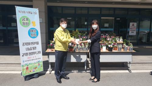 ±¤ÁÖµ¿ºÎ±³À°Áö¿øÃ»ÀÌ 5ÀÏ 2021³â Á¦76ȸ ½Ä¸ñÀÏÀ» ¸Â¾Æ 1Ãþ Çö°ü ·Îºñ¿¡¼ ¡®°ø±âÁ¤È ¹Ý·Á½Ä¹° ³ª´® Çà»ç¡¯¸¦ ÅëÇÑ Ã»·Å Ä·ÆäÀÎÀ» ÁøÇàÇß´Ù.