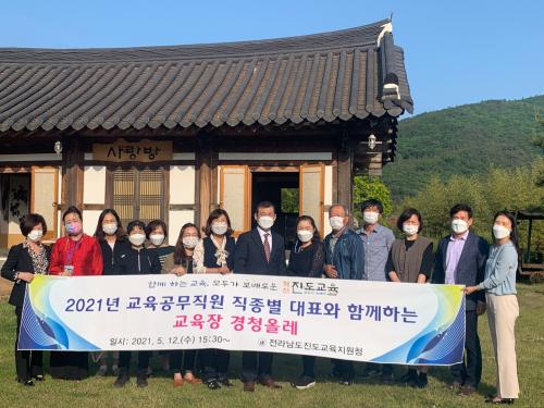 Áøµµ±³À°Áö¿øÃ»(±³À°Àå À̹®Æ÷)Àº Áö³ 5¿ù 12ÀÏ(¼ö) Áøµµ ¿î¸²¿¹¼úÃÌ¿¡¼ Äڷγª19ÀÇ »çȸÀû °Å¸®µÎ±â °³Æí¾È 1´Ü°èÀÇ ¹æ¿ªÁöħÀ» ÁؼöÇÑ °¡¿îµ¥ Áøµµ °ü³» ±³À°°ø¹«Á÷¿ø Á÷Á¾º° ´ëÇ¥ 10¸íÀ» ´ë»óÀ¸·Î ±³À°Àå °æÃ»¿Ã·¹¸¦ °³ÃÖÇÏ¿´´Ù.