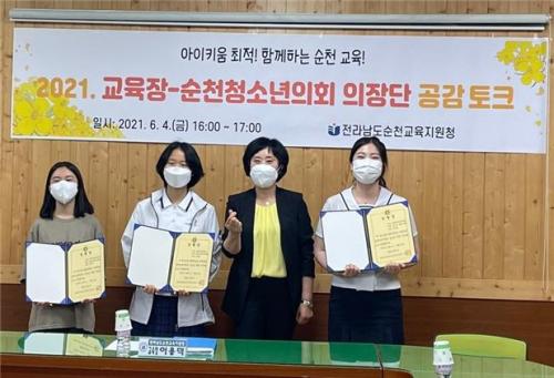 Àü¶ó³²µµ¼øÃµ±³À°Áö¿øÃ» ±³À°Àå(ÀÌ¿ë´ö)Àº Áö³­ 4ÀÏ ¼ÒȸÀǽǿ¡¼­ ¼øÃµÃ»¼Ò³âÀÇȸ ÀÇÀå´ÜÀ» ÃÊ´ëÇÏ¿©¡¸±³À°Àå-û¼Ò³âÀÇȸ ÀÇÀå´Ü °ø°¨ ÅäÅ©¡¹¸¦ °³ÃÖÇÏ¿´´Ù.