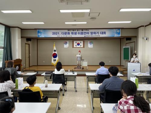 ÀÌÁß ¾ð¾î ¸»Çϱ⠴ëȸ´Â ´Ù¹®È ÇлýµéÀÇ ÀåÁ¡°ú ÀÚÁ¸°¨À» ³ô¿©ÁÜÀ¸·Î½á ´Ù¾çÇÑ ²ÞÀ» Ű¿ï ¼ö ÀÖ´Â ±âȸ¸¦ Á¦°øÇϰíÀÚ ½Ç½ÃÇßÀ¸¸ç, ´ëȸ¿¡ Âü¿©ÇÑ ÇлýµéÀº ´Ù¹®È°¡Á¤ ÇлýÀ¸·Î¼ ´À³¢´Â °¨Á¤µé, ÇâÈÄ °èȹÇÏ´Â Áø·Î¿¡ ´ëÇÑ »ý°¢µéÀ» Çѱ¹¾î¿Í ºÎ¸ð ¸ð±¹¾î·Î °¢ 3ºÐ¾¿ ¹ßÇ¥ ÇÏ¿´´Ù. À̹ø ´ëȸ¿¡¼ ¼±¹ßµÈ ÇлýÀº Àü¶ó³²µµ±³À°Ã» ÁÖ°ü ´ëȸ¿¡ ȼøÁö¿ª ´ëÇ¥·Î ÃâÀüÇÏ¸ç ´ëȸ¿¡¼ ¿ì½ÂÇÏ°Ô µÇ¸é ±³À°ºÎ¿¡¼ ÁÖ°üÇÏ´Â Àü±¹´ëȸ¿¡ Âü¿©ÇÏ°Ô µÈ´Ù.