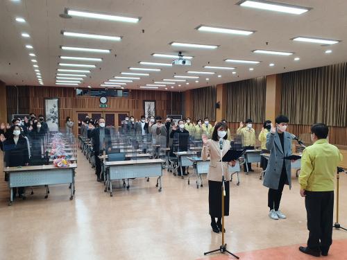 µ¿ºÎ±³À°Áö¿øÃ»ÀÇ »õÇØ ù °ø½ÄÇà»ç·Î ½Ç½ÃµÈ À̹ø ½Ã¹«½Ä ¹× û·Å¼±Æ÷½ÄÀº Äڷγª19 »óȲÀ» °¨¾ÈÇØ ¹æ¿ª¼öÄ¢À» öÀúÈ÷ ÁؼöÇϸ鼭 ´ë¸é ¹× ºñ´ë¸éÀ¸·Î ÁøÇàµÆ´Ù.