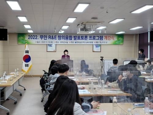 ¹«¾È, ¹«¾È R&E âÀÇÀ¶ÇÕ ¹ßÇ¥Åä·Ð ÇÁ·Î±×·¥(3±â) °³° ÃÊÀǼ±»ç½Ç¿¡¼ Çлý, Çкθð 40¿©¸íÀÌ Âü¼®ÇÑ °¡¿îµ¥ ÁøÇà
