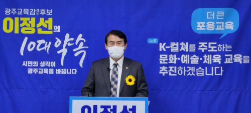 ÇÑÆí, ÀÌÁ¤¼± ±¤ÁÖ±³À°°¨ ¿¹ºñÈ帴 ±³À°ÇÐ Àü°ø(ÇС¤¼®¡¤¹Ú»ç)ÀÚ·Î ±³À°ÇÐ ±³¼ö, ±¤ÁÖ±³À°´ëÇб³ Á¦6´ë ÃÑÀå°ú ´ëÅë·É ±³À°ÀÚ¹®À§¿ø µîÀ» ¿ªÀÓÇÑ Á¤Ã¥°ú ÇöÀåÀ» °æÇèÇÑ ÁغñµÈ ±³À°Àü¹®°¡·Î Æò°¡¹Þ°í ÀÖ´Ù. ÃÖ±Ù ¸ÅÁÖ ¿ù¿äÀÏ¿¡ ±¤ÁÖ±³À°´ëÀüȯ 10´ë Á¤Ã¥À» ¹ßÇ¥ÇÏ°í ±³À°¼ö¿äÀÚ ¸ÂÃãÇü Çɼ Á¤Ã¥ÀÎ ¡®Ã¥°¡¹æ¡¯ Á¤Ã¥À» ¿¬ÀÌ¾î ¹ßÇ¥ÇÏ´Â µî Á¤Ã¥ Á᫐ ¼±°Å¿îµ¿À» À̾î¿À°í ÀÖ´Ù.