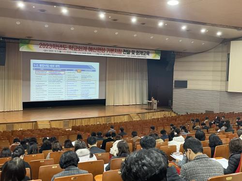 5ÀÏ ½Ã±³À°Ã»¿¡ µû¸£¸é À̹ø ±³À°Àº °ü³» °ø¡¤»ç¸³Çб³ ÇàÁ¤½ÇÀå, ¿¹»ê¾÷¹« ´ã´çÀÚ¸¦ ´ë»óÀ¸·Î ÁøÇàÇß´Ù. 2023Çг⵵ Çб³È¸°è ¿¹»êÆí¼º ±âº»Áöħ ÁÖ¿ä ³»¿ë°ú Çб³È¸°èÀÇ ±Ã±ÝÇÑ »çÇ× ¹× »ç·Ê¸¦ ÁßÁ¡ÀûÀ¸·Î ´Ù·ï ÀÌÇØ¸¦ µµ¿Ô´Ù.