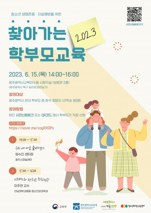 ±¤Áֽñ³À°Ã»ÀÌ ¿À´Â 15ÀÏ ±¤ÁÖ±³À°¿¬¼ö¿ø ½Ãû°¢½Ç¿¡¼ °ü³» Çкθð ´ë»óÀ¸·Î ¡®Ã»¼Ò³â »ý¸íÁ¸Áß¡¤Àڻ쿹¹æÀ» À§ÇÑ ¡¯2023³â ã¾Æ°¡´Â Çкθð±³À°¡®À» ½Ç½ÃÇÑ´Ù.
