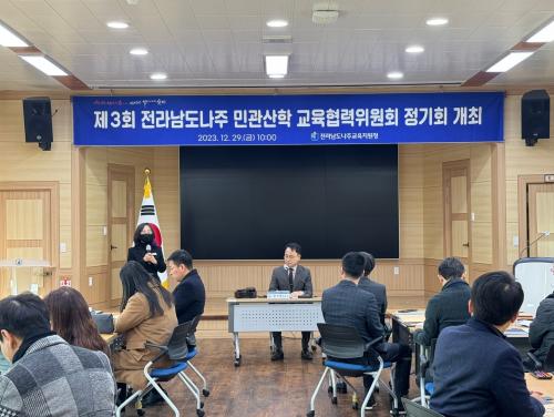 Àü¶ó³²µµ³ªÁÖ±³À°Áö¿øÃ»(±³À°Àå º¯Á¤ºó)Àº 2023³â 12¿ù 29ÀÏ ´ëȸÀǽǿ¡¼­ Á¦3ȸ Àü¶ó³²µµ³ªÁÖ ¹Î°ü»êÇÐ ±³À°Çù·ÂÀ§¿øÈ¸ Á¤±âȸ¸¦ °³ÃÖÇÏ¿´´Ù.