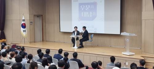 À̳¯ ¿¡µàÄܼ­Æ®´Â ¸ñÆ÷¿µÈ­Áß ±×·ì»ç¿îµå ¡®½Ã³ªºê·Î¡¯ÀÇ ½ÄÀüÇà»ç¸¦ ½ÃÀÛÀ¸·Î, ¸ñÆ÷Çй«¸ðȸ µî 3°³ ´Üü, ¸ñÆ÷ÇлýȸÃÑ¿¬ÇÕȸ ¹× ¸ñÆ÷½Ã¹ÎµéÀÌ Áú¹®ÇÏ°í ±è´ëÁß ±³À°°¨ÀÌ ´äº¯ÇÏ´Â ¹æ½ÄÀ¸·Î ÁøÇàµÇ¾ú´Ù. Âü¼®ÇÑ Çлý, Çкθð µî ±³À°±¸¼º¿øµéÀº ¸ñÆ÷¡¤¹«¾È¡¤½Å¾È ±³À°¹ßÀüƯ±¸, ¸ñÆ÷°í¡¤¸ñÆ÷¿©°í ÅëÇÕ, ÇлýÀÚġȰµ¿ Ȱ¼ºÈ­ µî ¸ñÆ÷±³À° °ü·Ã ´Ù¾çÇÑ Çö¾È°ú Æò¼ÒÀÇ °ü½É»ç¿¡ ´ëÇÑ Áú¹®À» ÇÏ¿´À¸¸ç, ±è´ëÁß ±³À°°¨Àº °¢ Áú¹®¿¡ ´ëÇÑ ÇöȲ ¹× ÇâÈÄ ÃßÁø»çÇ×°ú ÇÔ²² Æò¼Ò ±³À°°¨ÀÌ °¡Áö°í ÀÖ´ø ±³À°Ã¶Çп¡ ´ëÇØ¼­µµ Áø¼ÖÇÑ ´ëÈ­¸¦ ³ª´©¾ú´Ù.
