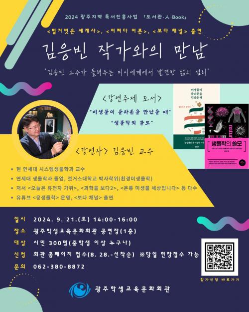 ±¤ÁÖÇлý±³À°¹®È­È¸°üÀº ¿À´Â 9¿ù 21ÀÏ È¸°ü °ø¿¬Àå¿¡¼­ ¡®±èÀÀºó ÀÛ°¡¿ÍÀÇ ¸¸³²¡¯ Çà»ç¸¦ °³ÃÖÇÑ´Ù.