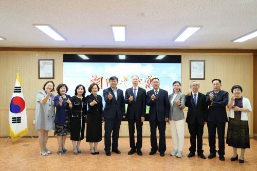 Àü¶ó³²µµ°Áø±³À°Áö¿øÃ»(±³À°Àå À̺´»ï)Àº 8¿ù 30ÀÏ(±Ý) û»ç¿¡¼ Áß±¹ »ê½Ã¼º »èÁÖ½ÃÀ§¿øÈ¸ ½öÈ«º¸(áä红÷î) ºÎ¼±â, »èÁÖ½ÃÀ§¿øÈ¸ ÆÇÂê¿ø(Ûàò¤Ùþ) ºÎºñ¼Àå, »èÁֽà ÀιÎÁ¤ºÎ ¿Ü»çó ÁÖÀÓ È²¿ëÈ«(黄çµ红), »èÁֽà ±³À°±¹ ¸®¿ì±¸¾îĪ(刘国清) ±¹Àå, »èÁֽà Àû½ÊÀÚȸ »ó¹«ºÎȸÀå Â¥¿À ¾¾¾Æ(赵ùÇ), »ê½Ã¼º ºÎÀνÃÀ§¿øÈ¸ ÅëÁö¿¡(佟Ëù) ºÎ¼±â·Î ±¸¼ºµÈ »ê½Ã¼º »èÁֽà ±³À°±³·ù´ÜÀ» ¸¸³ª Áß±¹°úÀÇ ¿ìÈ£°ü°è Çù·Â ÁõÁø ¹× ±¹Á¦±³À°±³·ù Ȱ¼ºÈ ¹æ¾ÈÀ» ³íÀÇÇß´Ù.