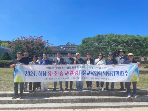 Àü¶ó³²µµ ÇØ³²±³À°Áö¿øÃ»(±³À°Àå ÀÌÀÚ¿µ)Àº 2024³â 9¿ù 3ÀϺÎÅÍ 4ÀϱîÁö 1¹Ú 2Àϰ£ °æ³² Å뿵°ú ÁøÁÖ¿¡¼ °ü³» À¯¡¤ÃÊ¡¤Áß¡¤°í ±³(¿ø)°¨ 19¸íÀ» ´ë»óÀ¸·Î '¸¶À»±³À°Çù·Â ¿ª·®°È ¿¬¼ö'¸¦ ÁøÇàÇß´Ù.