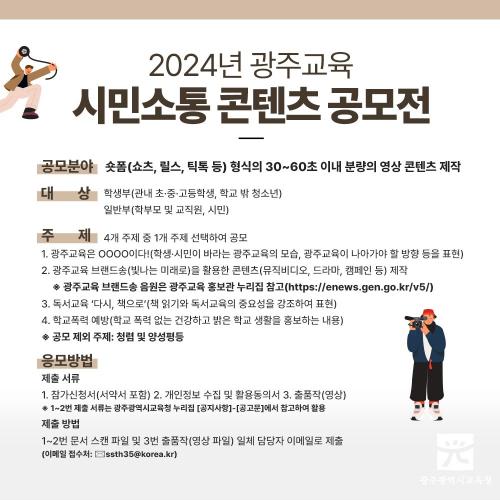 ±¤Áֽñ³À°Ã»Àº ¿À´Â 8~26ÀÏ ±³À°°¡Á·°ú ½Ã¹ÎÀÌ ÇÔ²²ÇÏ´Â ¡®2024 ±¤ÁÖ±³À° ½Ã¹Î¼ÒÅë ÄÜÅÙÃ÷ °ø¸ðÀü¡¯À» ½Ç½ÃÇÑ´Ù.