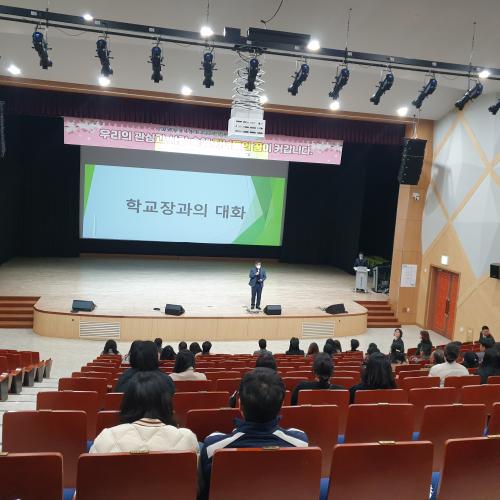 À̾ Çб³Àå°úÀÇ ´ëÈ­ ½Ã°£À» ¿î¿µÇß´Ù. ÇкθðµéÀÌ ÀÚÀ¯·Ó°Ô ±³Àå¼±»ý´Ô¿¡°Ô ±Ã±ÝÇÑ Á¡, °ÇÀÇ»çÇ× µîÀ» À̾߱âÇÏ¸ç ¼ÒÅëÀÇ ½Ã°£À» °¡Á³´Ù. ÀϹæÇâÀûÀÎ Àü´Þ ¹æ½ÄÀÌ ¾Æ´Ñ »óÈ£ °£ ¾ç¹æÇâ ¼ÒÅëÀ» ÇÏ´Â ½Ã°£À» ÅëÇØ ÇØ³²µ¿ ±³À°°øµ¿Ã¼ÀÇ ¸ñÇ¥¿Í ÀÌÇØ¿¡ µµ´ÞÇÏ´Â ÀǹÌÀÖ´Â ½Ã°£À» °¡Á³´Ù.