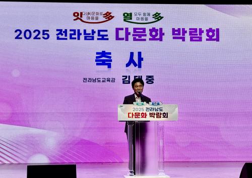 Àü¶ó³²µµ±³À°Ã»(±³À°°¨ ±è´ëÁß)Àº 9¿ù 27ÀÏ(Åä) È­¼ø ÇÏ´Ï¿ò¹®È­½ºÆ÷Ã÷¼¾ÅÍ¿¡¼­ Àü¶ó³²µµÃ»°ú ÇÔ²² ¡®2025 Àü¶ó³²µµ ´Ù¹®È­¹Ú¶÷ȸ¡¯¸¦ °øµ¿ °³ÃÖÇß´Ù. ÀÌ¿Í ¿¬°èÇØ ¸¶·ÃµÈ ¡®ÀÌÁß¾ð¾î Æä½ºÆ¼¹ú¡¯Àº ´Ù¾çÇÑ ¾ð¾î¿Í ¹®È­¸¦ °¡Áø ÇлýµéÀÌ Áö±¸ÃÌ °øµ¿Ã¼ÀÇ °¡Ä¡¸¦ ³ª´©´Â ¹«´ë·Î ²Ù¸çÁ³´Ù.