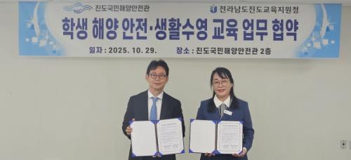 Àü¶ó³²µµÁøµµ±³À°Áö¿øÃ»(±³À°Àå ±è ¹Ì)ÀÌ Áøµµ±¹¹ÎÇØ¾ç¾ÈÀü°ü°ú 10¿ù 29ÀÏ Çлý ÇØ¾ç ¾ÈÀü°ú »ýȰ ¼ö¿µ ±³À° °­È­¸¦ À§ÇÑ ¾÷¹«Çù¾à(MOU)À» ü°áÇß´Ù. À̹ø Çù¾àÀº ÇлýµéÀÌ ¹Ù´Ù¸¦ ¾ÈÀüÇÏ°Ô ÀÌÇØÇϰí, ÇлýµéÀÇ ÇØ¾ç ¾ÈÀü ¹× »ýȰ ¼ö¿µ ±³À° ±â¹ÝÀ» °­È­Çϱâ À§ÇØ ¸¶·ÃµÆ´Ù.