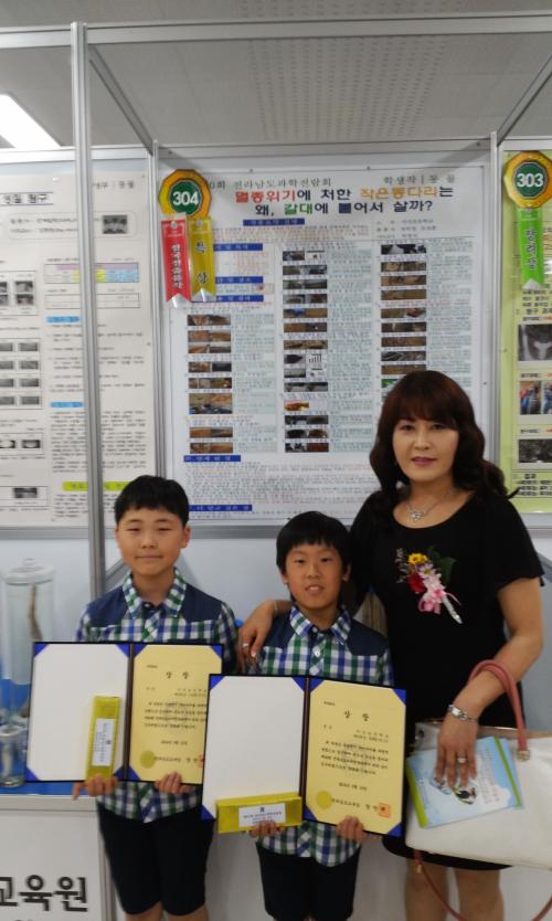 Á¦60ȸ Àü±¹°úÇÐÀü¶÷ȸ µ¿¹°ºÎ¹®¿¡¼ Ư»óÀ» ¼ö»óÇÑ 5Çгâ Á¤¸ñ¿µ, Á¶¼ºÈÆ ÇлýÀÇ ¡®¸êÁ¾À§±â¿¡ óÇÑ ÀÛÀºµ¿´Ù¸®´Â ¿Ö, °¥´ë¿¡ ºÙ¾î¼ »ì±î?¡¯´Â ¹Ú¸í½Ä ±³»çÀÇ Áöµµ·Î Àü±¹¿¡¼ À¯ÀÏÇÏ°Ô Àü¶ó³²µµ ¹«¾È±º Çö°æ¸é Çöȸ® ¹Ù´å°¡ÀÇ Á¶°£´ë °¥´ë ±º¶ôÁö¿¡¸¸ ¼½ÄÇÏ´Â ÀÛÀºµ¿´Ù¸®ÀÇ ¼½Äȯ°æ, ÀÛÀºµ¿´Ù¸®°¡ °¥´ë¿¡ ¿Ã¶ó°¡´Â ±î´ß, ÀÛÀºµ¿´Ù¸®°¡ °¥´ë¿¡ ¿À¸£³»¸®´Â ¸ð½À, ÀÛÀºµ¿´Ù¸® º¸Á¸ ¹× ÀÌ¿ë¹æ¾ÈÀ» ¹àÈù ÀÛǰÀÌ´Ù.
