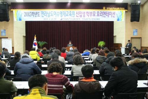 Àü¶ó³²µµ¿©¼ö¿µÀç±³À°¿ø(±³À°Àå ½É°æ¼·)Àº 2¿ù 24ÀÏ(È) ¿ÀÈÄ2½Ã ¿©¼ö±³À°Áö¿øÃ» ´ëȸÀǽǿ¡¼ ¿µÀç±³À° °ü·Ã ±³Á÷¿øµé°ú ÀÚ¿¬¿µ¿ª(ÃÊ¡¤Áß90¸í), Àι®¿µ¿ª(Áß30¸í), ¹ß¸í¿µ¿ª(ÃÊ30¸í)ÀÇ Çкθð 150¸íÀÌ Âü¼®ÇÑ °¡¿îµ¥ 2015Çг⵵ ¿©¼ö¿µÀç±³À°¿ø ½ÅÀÔ»ý Çкθð ¿À¸®¿£Å×À̼ÇÀ» °³ÃÖÇÏ¿´´Ù.