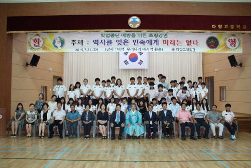 ´ÙÇâ°íµîÇб³(±³Àå ÀÌÇØÃ¤)´Â 7¿ù 21ÀÏ(È) ¿ì¸®³ª¶ó ¸¶Áö¸· Ȳ¼ÕÀÎ À̼®ÃÑÀ縦 ÃÊûÇÏ¿© ¡®¿ª»ç¸¦ ÀØÀº ¹ÎÁ·¿¡°Ô ¹Ì·¡´Â ¾ø´Ù¡¯´Â ÁÖÁ¦·Î Çо÷Áß´Ü ¿¹¹æÀ» À§ÇÑ °¿¬È¸¸¦ °¡Á³´Ù. ÀÌ ÀÚ¸®¿¡ Àü±³»ý°ú ±³Á÷¿ø »Ó ¸¸ ¾Æ´Ï¶ó º¸¼º±³À°Áö¿øÃ»±³À°Àå(±³À°Àå Á¤¿µ¹è), Çб³¿î¿µÀ§¿øÀå, º¸¼ºÁö¿ª ÀüÁÖÀ̾¾ Á¾Ä£È¸Àå, Çкθð, Áö¿ªÁֹΠµîÀÌ Âü¼®ÇÏ¿© Àǹ̸¦ ÇÑÃþ ´õ ³ô¿©ÁÖ¾ú´Ù.