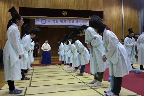 ´ã¾ç°í¼ÁßÇб³(±³Àå ±è¼ºÈñ)´Â ¿À´Â 3¿ù 2ÀÏ ¿ÀÈÄ 3½Ã, 2016Çг⵵ ÀÔÇнÄÀ» ½º½ÂÀ» óÀ½ ºÆ¿Ã ¶§ Á¸°æÀÇ ¶æÀ» Ç¥ÇÏ´ø Á¶¼±½Ã´ë ¡®¼Ó¼ö·Ê(áÖâ»ÖÉ)¡¯ ÀǽÄÀ¸·Î Ä¡¸£°Ô µÈ´Ù. ½ÅÀÔ»ýµéÀº À¯°Ç µµÆ÷¸¦ ÀÔ°í, ´ëÇ¥ ½º½ÂÀº ½ÉÀÇ(¼±ºñµéÀÌ ÀÔ´ø ¿ô¿Ê)¸¦ ÀÔ°í Âü¼®ÇÏ°Ô µÈ´Ù.