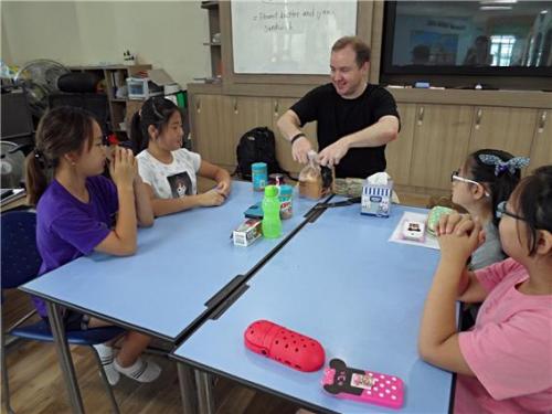 »çâÃʵîÇб³ ¹Ì±¹ÀÎ ¿ø¾î¹Î±³»çÀÎ Zachary BrownÀº À̹ø Ä·ÇÁ Ȱµ¿À» ÅëÇØ¼ ÇлýµéÀÌ ¿µ¾î·Î ¸»ÇÏ´Â °ÍÀ» µÎ·Á¿öÇÏÁö ¾Ê°í ¿µ¾î¸»Çϱ⸦ Áñ±æ ¼ö ÀÖ´Â ±âȸ·Î »ïÀ¸¸é ÁÁ°Ú´Ù°í ÀÚ½ÅÀÇ »ý°¢À» ¹àÇû´Ù.