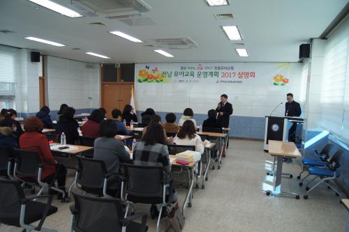 ¼³¸íȸ¿¡ Âü¼®ÇÑ À¯Ä¡¿ø ±³»ç´Â ¡°À̹ø ¼³¸íȸ¸¦ ÅëÇØ 2017Çг⵵ Àü³² À¯¾Æ±³À°ÀÇ ±âº» ¹æÇâÀ» ÀÌÇØÇÏ´Â µ¥ Å« µµ¿òÀÌ µÇ¾ú°í, Àü³²À¯¾Æ±³À°°ú ÀåÈï±³À°¿¡¼ °Á¶ÇÏ´Â ³»¿ëÀ» 2017³â À¯Ä¡¿ø ±³À°°úÁ¤ ¿î¿µ°èȹ¿¡ ¹Ý¿µÇϵµ·Ï ÇϰڴÙ.¡±°í ¸»Çß´Ù.