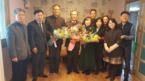 °£´ãȸ¿¡¼´Â Á¤³âÅðÁ÷À» ÇÏ´Â Ãʵî ÅðÁ÷±³¿ø 1¸í°ú Áßµî ÅðÁ÷±³¿ø 2¸í¿¡°Ô ¼Û°øÆÐ¸¦ Àü´Þ ÇÏ°í ¸í¿¹·Î¿î ÅðÀÓÀ» ÃàÇÏÇÏ´Â ÀÚ¸®°¡ µÆ´Ù.