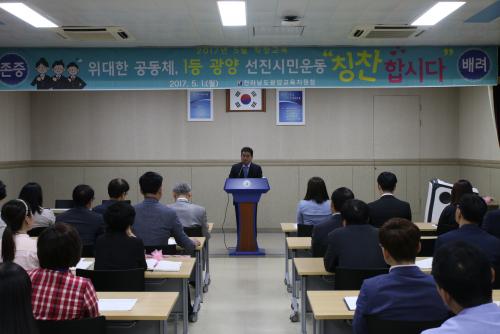 ¹®µ¿½Ä ±¤¾çºÎ½ÃÀåÀº À§´ëÇÑ °øµ¿Ã¼, 1µî ±¤¾ç ¼±Áø½Ã¹Î¿îµ¿ ¡°ÄªÂùÇսôÙ.¡±¶ó´Â ÁÖÁ¦·Î ±¤¾çÁö¿ªÀÇ »î, ¹®È, ¿ª»ç¼º, Á¤Ã¼¼º¿¡ ´ëÇÏ¿© ¼³¸íÇÏ¿´´Ù.