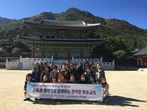 ÇöÀç ȼø±³À°Áö¿øÃ» »êÇÏ¿¡´Â ±³¹«ÇàÁ¤»ç 48¸í, ÇàÁ¤»ç¹«¿ø 6¸íÀÌ ±³¿øÇàÁ¤¾÷¹« °æ°¨ Áö¿øÀ» À§ÇØ Ã¥ÀÓÀ» ´ÙÇϰí ÀÖ´Ù. À̹ø ¿¬Âùȸ´Â ȼø±³À°Áö¿øÃ»ÀÌ Áö³ 8¿ù Àü³² ±³À°·Â Çâ»ó ½Ã¹üÁö±¸·Î ¼±Á¤µÊ¿¡ µû¶ó ȼø±³À°À» Áö¿øÇÏ´Â ±³Á÷¿øµéÀÇ ¿ª·®À» °ÈÇÏ´Â ¿¬ÂùȸÀÇ ÀÏȯÀ¸·Î ÃßÁøµÆ´Ù.