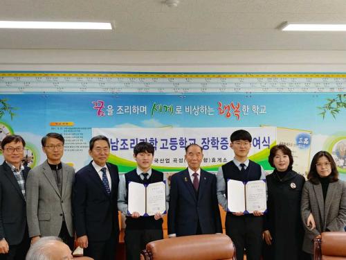 ¢ß¾È±¹»ê¾÷ ±è¼º¼ö ´ëÇ¥´Â 2018³â 3¿ù 12ÀÏ(¿ù) Àü³²Á¶¸®°úÇаí(±³Àå ±èÀçÀÎ)¸¦ Á÷Á¢ ¹æ¹®ÇØ 2018Çг⵵ Á¶¸®°ú 3Çгâ ÃÖÁØ¿µ, ÀÌ»óÀ± Çлý¿¡°Ô °¢°¢ 50¸¸¿øÀÇ ÀåÇбÝÀ» Àü´ÞÇÏ¿´´Ù.