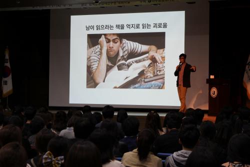 À̳¯ °¿¬¿¡¼ ±è ÀÛ°¡´Â ¡°¿ì¸®°¡ Ã¥ÀбâÀÇ ±«·Î¿òÀ» ±â²¨ÀÌ °¨´çÇÏ´Â ÀÌÀ¯´Â ¹«¾ùÀΰ¡¡±¶ó´Â Áú¹®À¸·Î °¿¬À» ½ÃÀÛÇÏ¿© Çö´ë¿Í °ú°Å¸¦ ¾Æ¿ì¸£´Â ¹æ´ëÇÑ Áö½Ä°ú Ã¥°ú µ¶¼¿¡ ´ëÇÑ Èï¹Ì·Î¿î ¿¡ÇǼҵ带 Ç®¾î³»¸ç 2½Ã°£¿¡ °ÉÄ£ °¿¬À» À̾´Ù. ƯÈ÷, Ã¥ÀбâÀÇ Áñ°Å¿òÀ» °íÀü¿¡¼ ã¾Æº¼ °ÍÀ» Á¦¾ÈÇϸç, °íÀüÀº ½Å°£¿¡ ºñÇØ ÈξÀ Èï¹Ì·Ó°í ¸¹Àº À̾߱⸦ ´ã°í ÀÖ´Ù°í ÀüÇß´Ù.